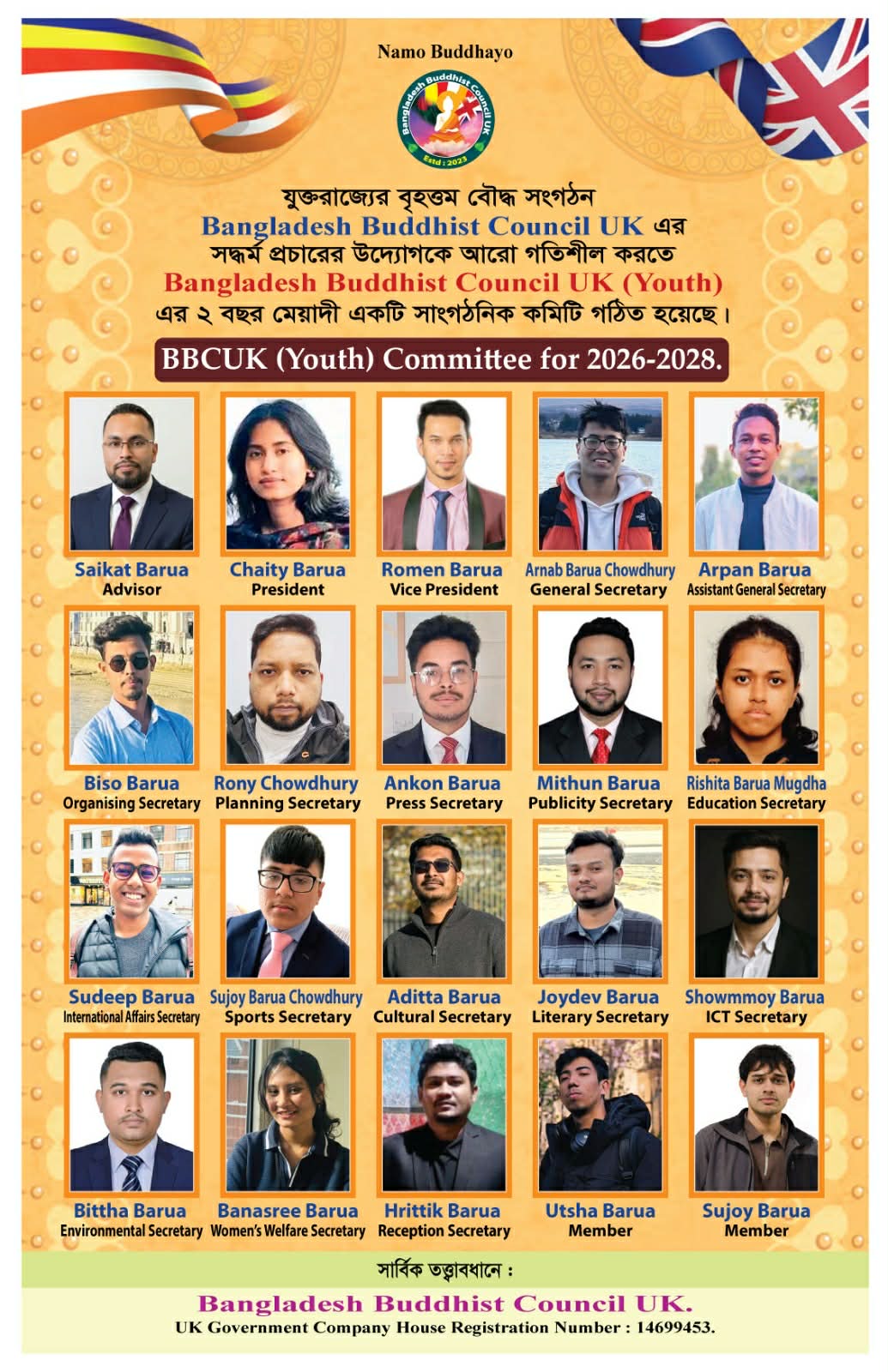 যুক্তরাজ্যের বৌদ্ধ সংগঠনবাংলাদেশ বুড্ডিস্ট কাউন্সিল ইউ,কের যুব শাখা বাংলাদেশ বুড্ডিস্ট কাউন্সিল ইউ,কের যুব শাখার ২ বছর মেয়াদী ২০২৬-২০২৮ পর্যন্ত নতুন কমিটি গঠিত হয়েছে।