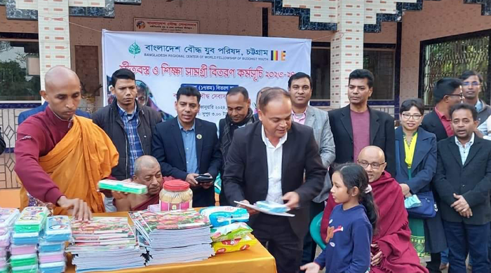 বাংলাদেশ বৌদ্ধ যুব পরিষদ চট্টগ্রাম অঞ্চলের শীতবস্ত্র ও শিক্ষাসামগ্রী বিতরণ