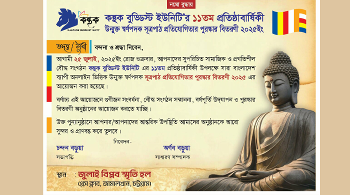 কন্থক বুড্ডিস্ট ইউনিটি এর ১১ তম প্রতিষ্ঠাবার্ষিকী উদযাপন আগামীকাল চট্টগ্রাম প্রেস ক্লাবে